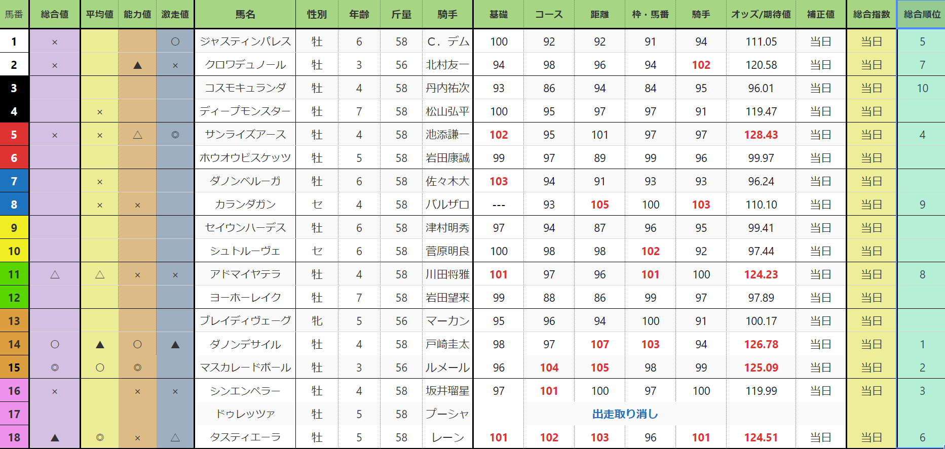 指数ではマスカレードボールとタスティエーラがやや抜けてる。
