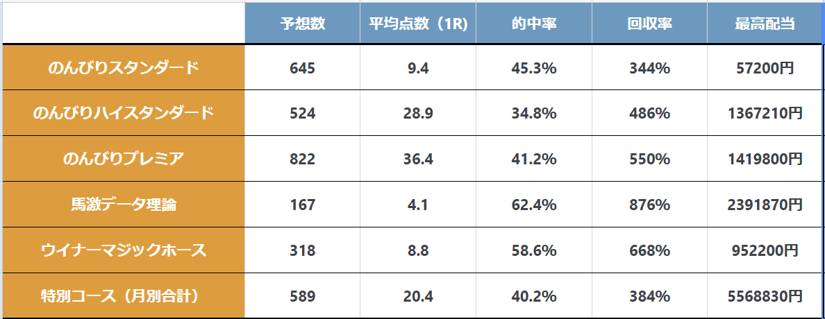 今年度の会員プラン別成績です。